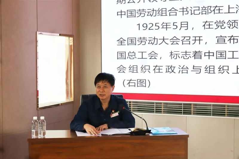宣講中,趙春棠以《從黨領(lǐng)導(dǎo)中國工人運(yùn)動(dòng)的百年歷史中汲取奮進(jìn)力量》為題,從中國共產(chǎn)黨領(lǐng)導(dǎo)工人運(yùn)動(dòng)的百年歷程、中國共產(chǎn)黨領(lǐng)導(dǎo)工人運(yùn)動(dòng)的理論探索、百年中國工人運(yùn)動(dòng)的啟示體會(huì)三方面進(jìn)行了一場生動(dòng)的宣講。并與參會(huì)人員進(jìn)行了黨史知識互動(dòng)問答,進(jìn)一步引導(dǎo)廣大黨員干部傳承紅色基因,厚植為民情懷,切實(shí)為職工辦好事、辦實(shí)事、解難題。