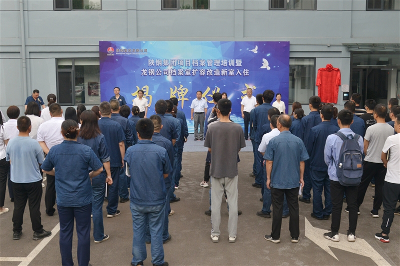 7月22日,陜鋼集團項目檔案管理培訓(xùn)暨龍鋼公司檔案室擴容改造新室入住揭牌儀式在龍鋼公司檔案室樓前順利舉行。韓城市檔案局副局長孫燕、寶山鋼鐵公司檔案咨詢總監(jiān)葛敏、陜西金銀島建筑工程有限公司董事長張忠潮、陜煤集團綜合部業(yè)務(wù)主任張春喜、陜鋼集團高級經(jīng)理張靜等應(yīng)邀參加,龍鋼公司副總經(jīng)理朱元洲及漢鋼公司、龍鋼集團、創(chuàng)新研究院以及脫硫提升、煉鋼技術(shù)改造等項目部、施工單位檔案負(fù)責(zé)人參加儀式。