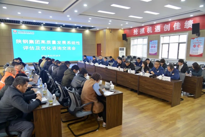 2月24日,陜鋼集團(tuán)高質(zhì)量發(fā)展系統(tǒng)性評估及優(yōu)化咨詢交流會在公司召開。陜鋼集團(tuán)戰(zhàn)略投資部總經(jīng)理樊定民、副總經(jīng)理白玉鵬,科技發(fā)展部副總經(jīng)理孫穎,中冶賽迪黨委委員、總工程師范新庫,項目經(jīng)理兼總設(shè)計師劉輝,公司領(lǐng)導(dǎo)李都宏、姜劍鋒、王建軍及相關(guān)單位人員參加。會議由樊定民主持。