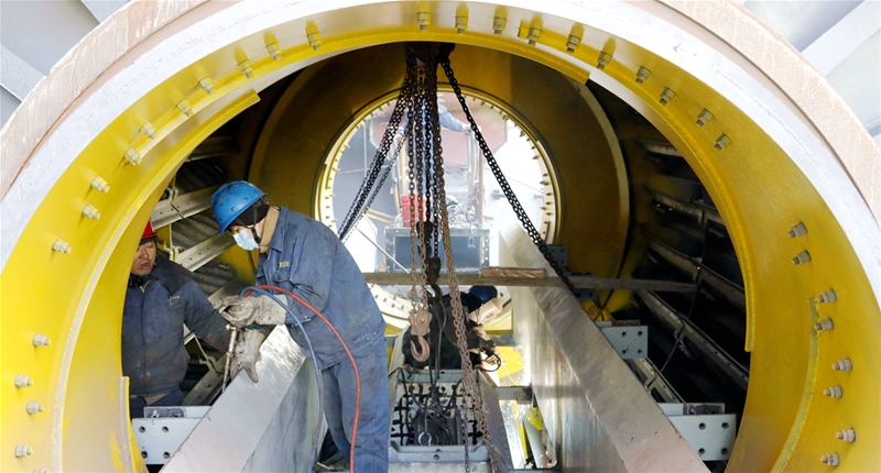 “我用鐵錘敲打,你用扳手使勁。”“師傅,搭把手!一二,一起用力……”在他們的齊心協(xié)力配合下,一顆顆螺栓掉落在地的聲音猶如天籟之音。他們合力拆卸、吊運、更換,各司其職,團結(jié)協(xié)助此刻在這里得到了充分體現(xiàn)。