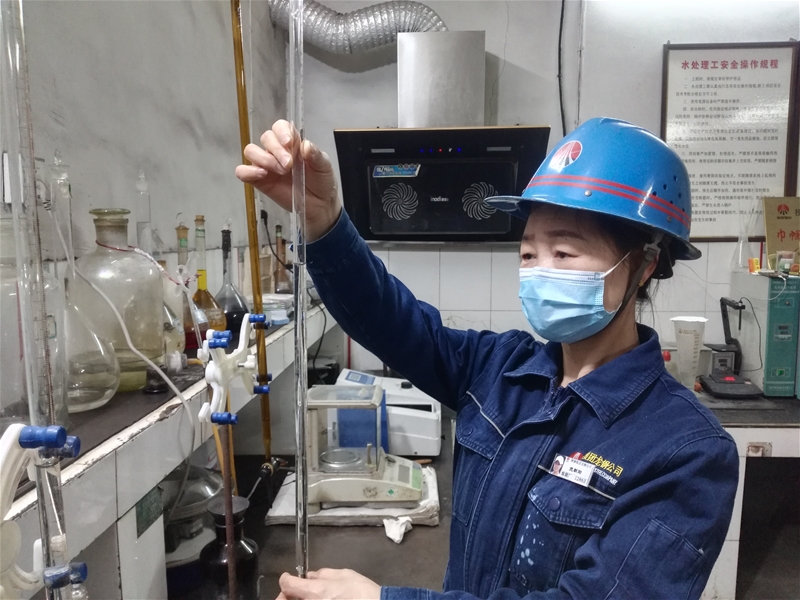榮獲陜鋼“好媳婦”榮譽(yù)的黨朝陽平日既要照顧八十多歲的公公、婆婆,還得料理好自己的小家。但她的工作也干得有聲有色、毫不馬虎。這會(huì)她正在忙著化驗(yàn)水質(zhì),剛接班,只見操作臺(tái)上擺滿了從轉(zhuǎn)爐、連鑄各個(gè)泵房取來的二冷水、結(jié)晶器水、除塵水水樣,她忙而不亂、井然有序地操作化驗(yàn)器具,一會(huì)在濁度儀上監(jiān)測(cè)水質(zhì)濁度,一會(huì)用酸度計(jì)測(cè)量PH值,一會(huì)又忙著測(cè)水中懸浮物、含油量、磷酸根……