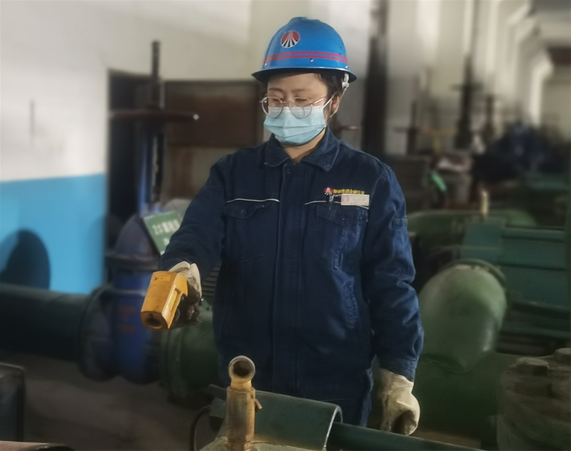 但還在崗位的她看不出有一點(diǎn)焦急,一臺(tái)一臺(tái)認(rèn)真點(diǎn)檢設(shè)備,二冷泵、除塵泵、凈環(huán)泵、濁環(huán)泵……她別人勸她草草檢查完就可以回去了,但她堅(jiān)持要把每臺(tái)水泵都檢查一遍,用自己的細(xì)心和耐心維護(hù)著水泵的正常運(yùn)行。