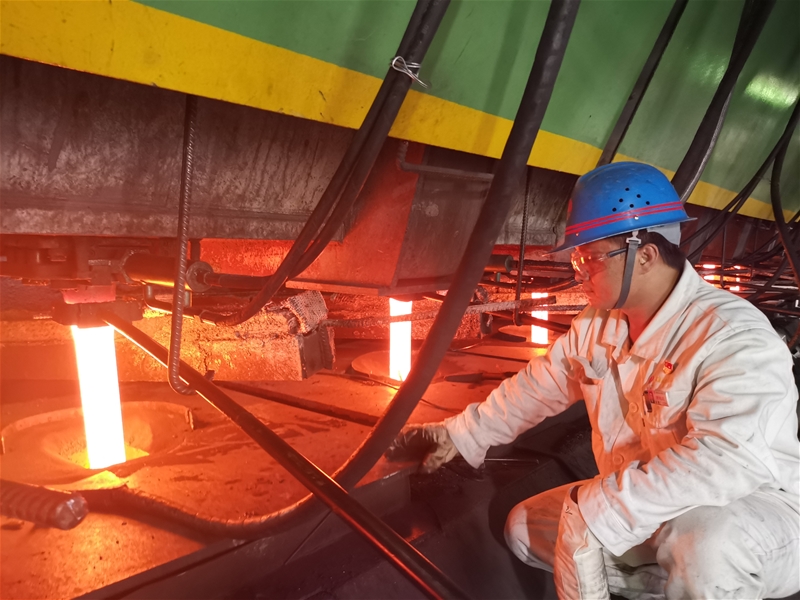 奔涌的鋼水、飛濺的鋼花、炙熱的紅坯……在連鑄生產(chǎn)車間的角角落落,無不體現(xiàn)著熱烈、奮進(jìn)的激情。春末夏初之際,連鑄生產(chǎn)一線溫度持續(xù)攀升,煉鋼人熱情高漲,他們與鋼水為伍、與高溫相伴,為實現(xiàn)“雙目標(biāo)”,堅決打贏“三大翻身仗”全力以赴。看,滾滾的鋼水前,他們一次次測量著鋼水溫度;飛濺的鋼花中,他們相互協(xié)作更換中包套管;火熱的紅坯旁,他們守護(hù)著“火龍”前進(jìn);緊張的檢修中,他們一秒也不敢耽擱……測溫、排渣、澆鋼、換水口、切割紅坯……這些看似簡單的工作,其實需要頑強(qiáng)的毅力和過硬的操作技能才能完成。煉鋼、練人、煉魂,盡管工作艱苦,但是他們沒有一人喊苦叫累,對于每一項工作,他們都全力以赴,在煉鋼中冶煉非凡的鋼鐵人生。