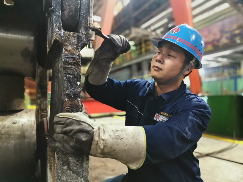 一次搶修作業(yè),一個流的鋼水漏到輥子上無法轉(zhuǎn)動,噴淋管噴咀堵塞,再加上兩邊1000多度的鋼坯還在生產(chǎn),100多度的水蒸氣彌漫在整個狹小的空間中。為了保證生產(chǎn),他毫不猶豫,直接拿著毛巾把臉裹起來就沖了進(jìn)去,卸噴咀、清粘鋼……一路走來,這樣的場景,他經(jīng)歷了許多次,但他從不畏懼高溫和困苦,精心守護(hù)著連鑄的安全生產(chǎn)。