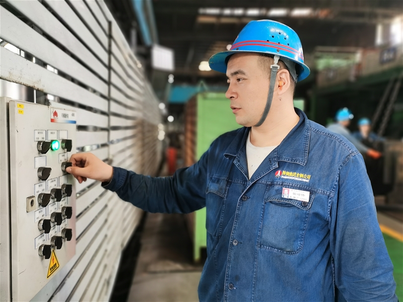 隨著氣溫逐漸升高,生產線就像蒸籠一般,溫度不言而喻,即使經受高溫的炙烤,但加熱爐工長梁磊仍堅守在生產現(xiàn)場。早上8:00,他和往常一樣了解完夜班生產情況后,準備對煤氣區(qū)域點檢情況進行復查,只見他查驗煤氣檢測儀、檢查大學生劉思超勞保穿戴規(guī)范后,兩人一起來到加熱爐平臺查看設備運轉情況、檢測煤氣濃度。一邊檢測一邊給劉思超講解加熱爐工藝操作和原理,時不時看看劉思超所記錄的知識點是否正確。隨后,兩人又來到加熱爐風機房查看設備運轉狀況,一圈轉下來,他們滿頭大汗,稍微擦拭后,便返回操作臺對檢查情況進行總結,他們用敬業(yè)完成這份“高烤”測試考卷,以扎實的專業(yè)基礎知識迎接未知的“大考”。