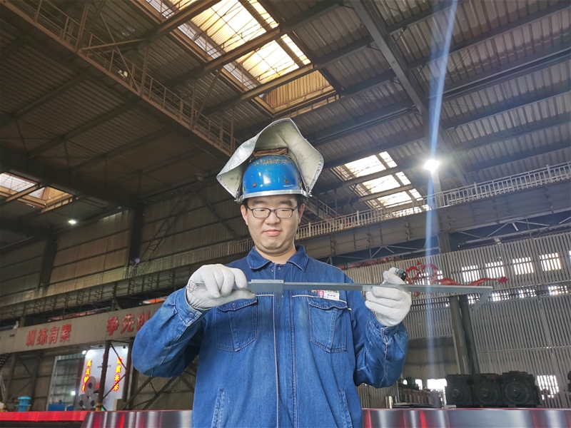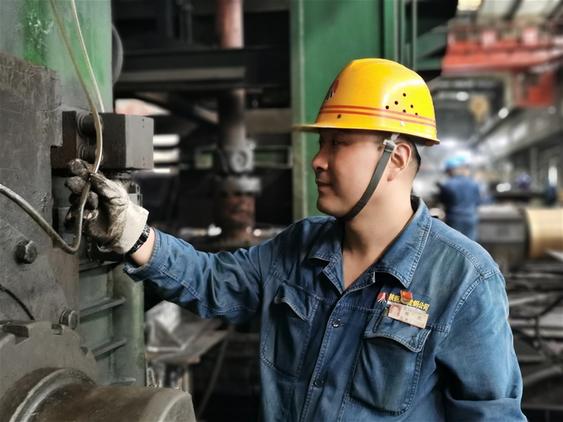 下午兩點(diǎn)半,筆者走進(jìn)熱浪滾滾的板鏈區(qū)域,只見身著厚重的工服,戴著隔熱面罩的趙宇輝正在俯身測(cè)量板材的厚度和寬度,他快速測(cè)量后,轉(zhuǎn)過(guò)身,背靠著火紅的板材,掀起面罩,準(zhǔn)確讀數(shù)后,顧不上喘口氣,便走進(jìn)值班室填寫記錄,碰上測(cè)量尺寸超差的,立刻用對(duì)講機(jī)聯(lián)系軋線主調(diào)整工進(jìn)行壓料或者放料操作,為確保成品質(zhì)量,他始終堅(jiān)守在軋線最熱的地方。據(jù)了解,正常情況下半小時(shí)測(cè)量一次板材尺寸就可以,若遇到軋線頻繁換號(hào),就要根據(jù)生產(chǎn)實(shí)際增加測(cè)量次數(shù),有時(shí)需要連續(xù)測(cè)量半小時(shí)以上。板鏈區(qū)域是板帶生產(chǎn)線溫度最高的地方,尤其到下午,熱浪襲來(lái),烤得人異常難受,但即使這樣艱苦的工作環(huán)境,他依然無(wú)怨無(wú)悔堅(jiān)守在生產(chǎn)一線,不懼“烤”驗(yàn)戰(zhàn)高溫,以實(shí)干彰顯青年擔(dān)當(dāng)。