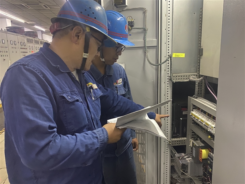 棒材一線加熱爐液壓站共有5臺(tái)主電機(jī),其控制電源無(wú)法切斷且無(wú)畫(huà)面運(yùn)行顯示,導(dǎo)致控制電源一直帶電存在安全隱患,主電機(jī)運(yùn)行切換時(shí)崗位工需現(xiàn)場(chǎng)確認(rèn)。針對(duì)以上問(wèn)題,該作業(yè)區(qū)技術(shù)人員對(duì)每臺(tái)電機(jī)的控制電源安裝相應(yīng)的電源開(kāi)關(guān),并編寫(xiě)電機(jī)運(yùn)行程序。改造后,若檢修某臺(tái)電機(jī)時(shí),可同時(shí)斷開(kāi)相應(yīng)的主回路和控制回路電源,崗位工可通過(guò)監(jiān)控畫(huà)面掌握每臺(tái)電機(jī)運(yùn)行情況,極大地降低了人員勞動(dòng)強(qiáng)度,確保了作業(yè)人員安全。