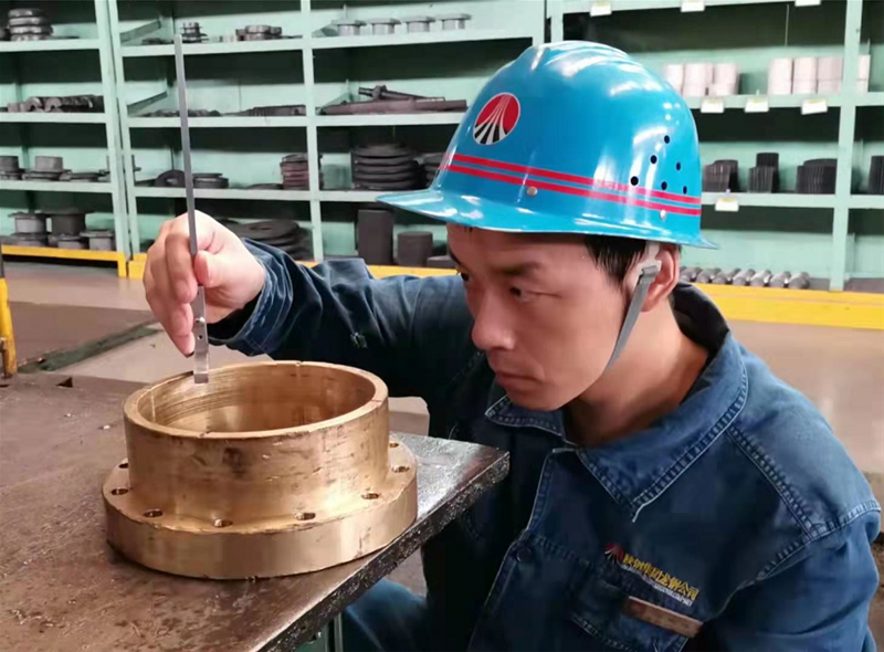 棒材一線在線使用的一臺(tái)380軋機(jī)晃動(dòng)嚴(yán)重,嚴(yán)重影響軋線正常運(yùn)行。經(jīng)技術(shù)人員檢查下線設(shè)備,發(fā)現(xiàn)380軋機(jī)銅法蘭與絲杠定位面磨損嚴(yán)重,導(dǎo)致定位不準(zhǔn),軋機(jī)晃動(dòng)嚴(yán)重。針對(duì)此問題,技術(shù)員決定重新測(cè)量銅法蘭與絲杠間隙,利用車床精修銅法蘭尺寸,確保安裝后與絲杠配合緊密。改造后,380軋機(jī)晃動(dòng)問題得到了根本解決,確保了生產(chǎn)穩(wěn)定順行。