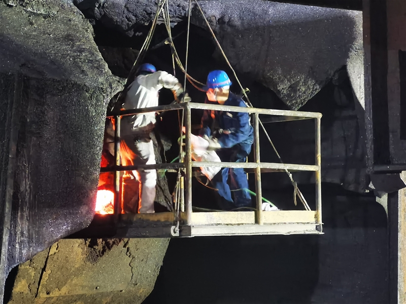 此次檢修時間緊、任務(wù)重,為了高質(zhì)量完成檢修任務(wù),該單位黨員干部瞄準(zhǔn)目標(biāo)、通力協(xié)作,“釘”在檢修現(xiàn)場。恰逢高溫時節(jié),檢修現(xiàn)場酷熱異常,從爐口散發(fā)出來的熱浪令人望而生畏。而所有參與檢修的斗士們毫不畏懼,他們身著白色阻燃服、腳踩專用耐高溫鞋,全副武裝,冒著炙烤進行“清爐襯”作業(yè)。由于爐內(nèi)空間狹窄,加之溫度高,清爐襯過程異常艱難。他們分為兩組,輪換作業(yè),保證進度絲毫不減。汗水浸濕了工服,汗珠往下滴個不停,而檢修隊員毫不理會,他們拼著勁往前沖……在他們的全力拼搏下,原本計劃一天拆完爐襯,他們只用了半天就完成了,這就是煉鋼速度。