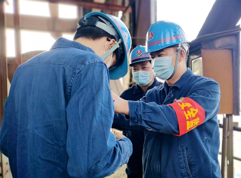 “同志,請將第一顆紐扣扣緊,注意安全。”安全督查員陳建勛一邊進行安全提醒,一邊細心為這名員工扣上紐扣。“您好,請出示三級動火作業(yè)許可證。”在料罐更換均壓盲板檢修現(xiàn)場,安全員薛曉勇正確認外協(xié)單位動火作業(yè)手續(xù)是否齊全。“現(xiàn)在可以繼續(xù)作業(yè),作業(yè)過程做好監(jiān)護,注意安全……”他們時時刻刻都在給檢修人員敲響安全警鐘。