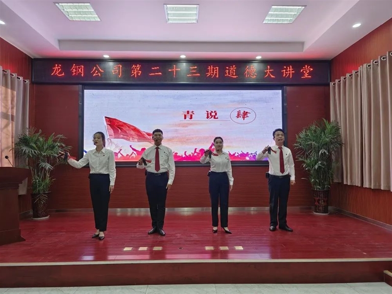 此次道德大講堂以“青春中國 強企有我”為主題,共設五個環(huán)節(jié)。青思環(huán)節(jié),全體在場人員一起聆聽習近平總書記在黨的二十大報告中對青年的寄語,激發(fā)了大家堅定不移聽黨話、跟黨走,與時代同步伐、與人民共命運、與企業(yè)齊奮進的昂揚斗志;青聲環(huán)節(jié),一曲《少年中國說》將青年心似驕陽、意氣風發(fā)的開拓進取之姿展露無遺;青才環(huán)節(jié),4名志愿者分享了鋼城優(yōu)秀青年的成長故事,讓大家近距離感悟榜樣力量,體會先進卓越,從而自覺對標向模范看齊;青說環(huán)節(jié),鏗鏘有力的快板表演讓黨的二十大精神更加深入人心,勉勵廣大青年堅持學思用貫通、知信行統(tǒng)一;青拳環(huán)節(jié),退役青年軍人的擒敵拳打出了豪氣與壯志,更展現(xiàn)了龍鋼人堅定理想、百折不撓、勇于創(chuàng)新、勇挑重擔的精氣神。