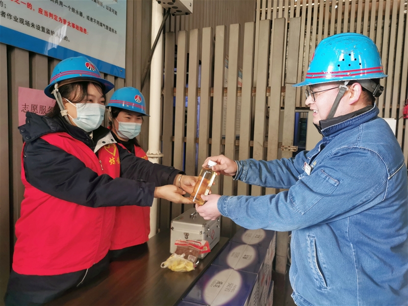 “熱騰騰的姜糖水,喝點(diǎn)暖暖身。”該單位分別在爐臺(tái)、爐頂及熱風(fēng)爐區(qū)域設(shè)立志愿服務(wù)站,精心為參檢人員熬制“暖心姜糖水”,為檢修做好后勤保障。
