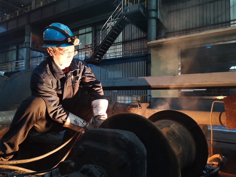 是什么讓他們?nèi)绱诵判氖?懷著好奇心,筆者詢問了現(xiàn)場作業(yè)人員。原來,針對(duì)加熱爐年修,軋鋼系統(tǒng)本著“讓一線員工少干活”的出發(fā)點(diǎn),摒棄前期人鏟車推的清渣方式,堅(jiān)持“大智慧在民間”思路,在全廠征集加熱爐清渣方案,提前在現(xiàn)場制作收集漏斗,通過集中回收到斗子中,運(yùn)用叉車進(jìn)行轉(zhuǎn)移,變?nèi)肆槿藱C(jī)配合,干活效率高了,一線員工的干勁更足了。
