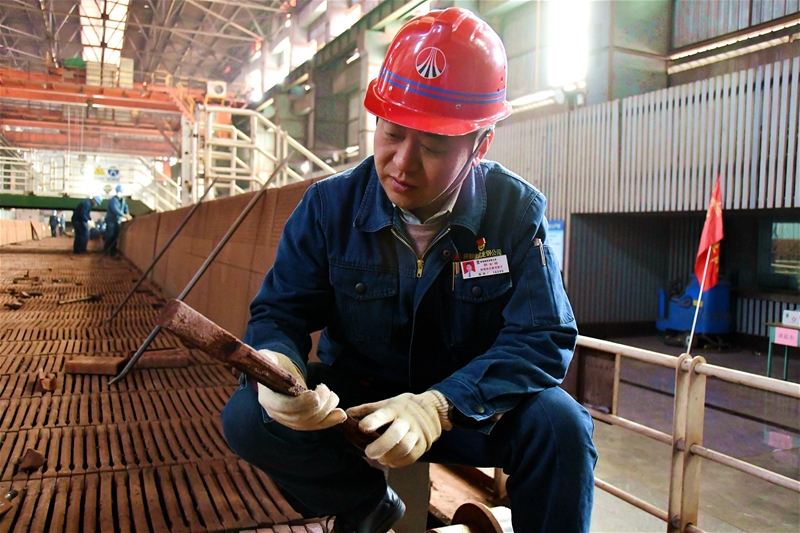 265㎡燒結(jié)機(jī)臺(tái)車檢修現(xiàn)場(chǎng),129塊臺(tái)車,每塊臺(tái)車上有30個(gè)螺栓。3870個(gè)螺栓在配料班長(zhǎng)王黎的巧手操作中,一個(gè)個(gè)迅速、精確歸位。一天下來(lái),王黎的胳膊、雙手早已酸痛無(wú)比。“只要能夠保證檢修質(zhì)量,自己再苦再累都值得。”他笑著說(shuō)道。