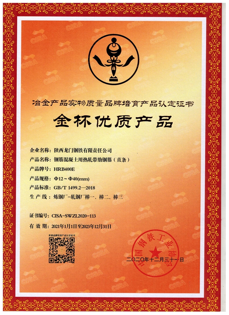 金杯優(yōu)質(zhì)產(chǎn)品證書