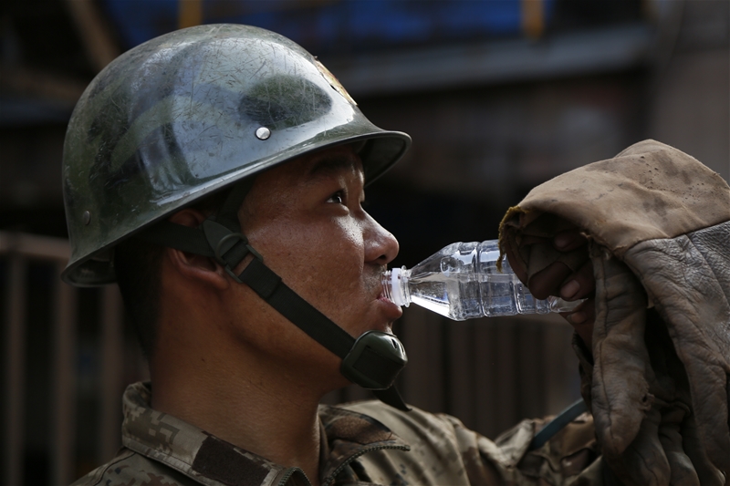 圖11:工人師傅趁著勞作休息片刻,趕緊端起水瓶猛飲幾口。