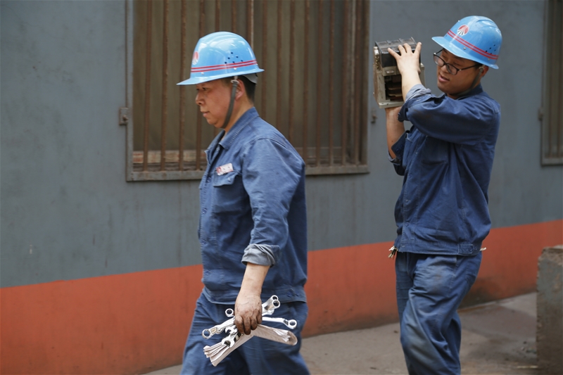 圖8:電氣工人正在加快調(diào)試新購(gòu)置的環(huán)境提升 “幫手”——霧炮機(jī)。