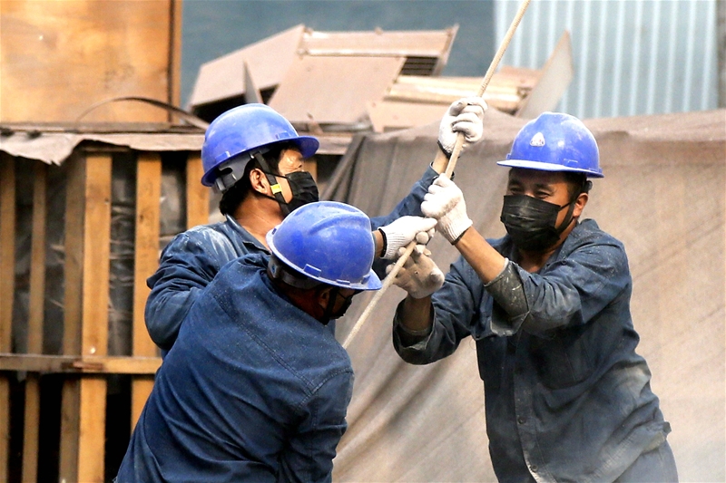 圖13:高爐工人正轉(zhuǎn)移廢舊鐵皮,讓現(xiàn)場(chǎng)物資堆放更有序。
