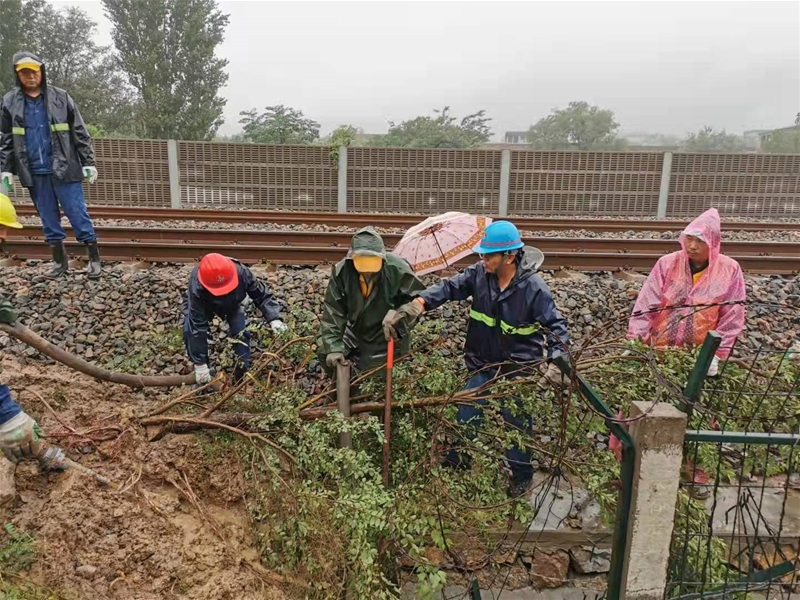 圖五:公司搶險(xiǎn)突擊隊(duì)員及救援車輛正趕往新站臺(tái)護(hù)坡處進(jìn)行現(xiàn)場(chǎng)救援,在確保工業(yè)站鐵路線正常運(yùn)行的同時(shí),不影響正線有序通行。