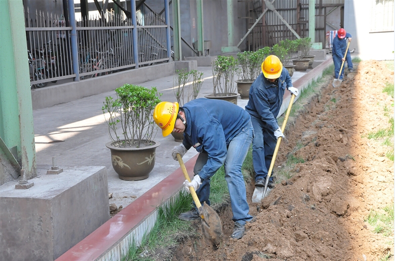 活動現(xiàn)場,大家早早來到指定綠化區(qū)域,拿好提前準備好的鐵鍬、水桶等工具。春風(fēng)雖寒,但大家植樹的熱情不減,分工明確、配合默契,有的挖坑、有的松土、有的擔(dān)水、有的檢查苗木是否存活,個個忙的不亦樂乎。經(jīng)過半天的辛勤勞動,共挖樹坑30個、撿拾綠化帶100米、移植苗圃植株26棵。