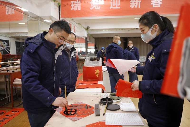 職工把“福”帶回家,感受到“春聯(lián)在手上、祝福在字里、歡樂在心中”的暖意,更感受到企業(yè)大家庭的溫暖。大家紛紛表示,在新的一年將努力工作,以更加飽滿的激情,迎接新的挑戰(zhàn),在充滿榮光和夢想的新征程上大展宏“兔”、踔厲奮發(fā)、勇毅前行,創(chuàng)造更加輝煌的業(yè)績。據(jù)悉,此次活動共為廣大干部職工書寫對聯(lián)1600余副,“福”字300多個。