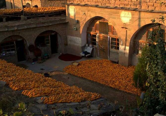 冬日的陜北,山脈連綿寂寥,可裊裊炊煙卻為這廣闊天地添了幾分色彩。天還麻麻亮的時(shí)候,陜北的婆姨就開始忙了,堿坂上的碾轱轆悠哉悠哉的轉(zhuǎn)著。拉碾子的驢走走停停,時(shí)而偷吃一嘴玉米面,婆姨罵罵咧咧道:“你這個(gè)老家禽,給你喂時(shí)你不餡,正讓你干活你就餡歡了,噔俅。”跟著母親的孩子,懷中抱著柴草,燃燒在磨盤旁邊,給母親足夠的亮光。“日上三竿”,人們才懶洋洋的出了窯洞,太陽(yáng)暖烘烘的照到堿坂上那幾根椽上時(shí),那里就開始熱鬧了。吃過飯的人們來(lái)到這里,圪蹴在椽上曬太陽(yáng),偶爾有一兩家飯做得遲的,會(huì)端上美美一老碗黃米撈飯,來(lái)趕個(gè)場(chǎng),也圪蹴下問旁邊的人:“你們吃蘭嚒?沒吃家里多得是,可道我家舀去。”眾人發(fā)出:“你就不會(huì)把盆端出來(lái)?小氣死啦、光顧你一個(gè)人吃哩、端一碗夠誰(shuí)吃?你也太不實(shí)在了……”端飯的人嘿嘿一笑,嘶溜嘶溜的吃起自己的飯。