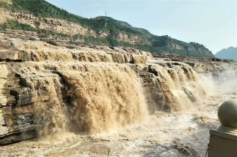 壺口瀑布西岸為陜西省延安市宜川縣壺口鄉(xiāng),東岸是山西省臨汾市吉縣壺口鎮(zhèn),為兩省共有的國家4A級旅游景區(qū)。壺口瀑布是中國第二大瀑布,世界上最大的黃色瀑布。黃河奔流至此,河口收束狹如壺口,故名壺口瀑布。從韓城市區(qū)出發(fā),沿108國道、沿黃公路一路向北,大約兩小時車程,進入壺口景區(qū),遠遠的,黃河的吼聲已是如雷貫耳,購票進入,兩岸游人如織,河灘大石上也已站滿了人。拍照,到處都是美景,面對似從天降的黃河之水,如天河決口,似大海倒懸,咆哮噴涌,由平地直撲而來,又迅疾跌入谷底,我佇立良久、默默無語,任憑飄散的水霧撲面而來,深呼吸著混有泥土的味道。壺口蜿蜒向下,猶如大地撕開的胸膛,巨量的黃河水傾瀉而下,十里龍槽波濤翻滾,如千軍萬馬咆哮怒吼,如天塌地陷大地顫抖。此時,任何華麗的詞語,都無法準確形容這雄渾壯觀的場面,任何高亢的贊美,在這里都顯得蒼白、輕如鴻毛。我也仿佛理解了冼星海譜寫《黃河大合唱》時的激情,理解了作家詩人常常用此比喻堅強不屈的中華兒女,反抗壓迫、抗爭屈辱的精神。